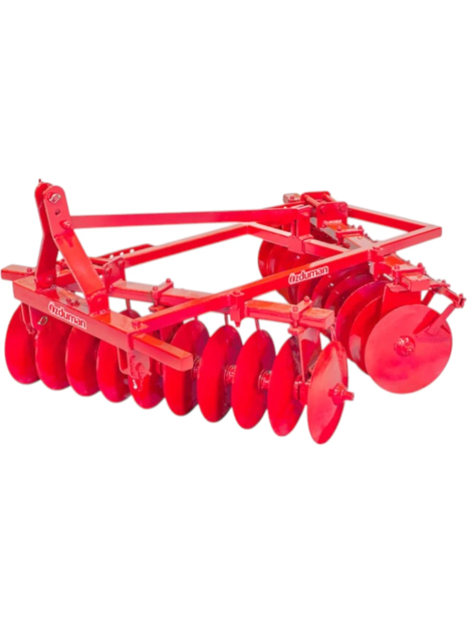 The suspended type offset disc harrow is a suspended machine favoured in garden farming and small plots due to its ease of use. The disc direction angles can be easily adjusted on the front and rear batteries.