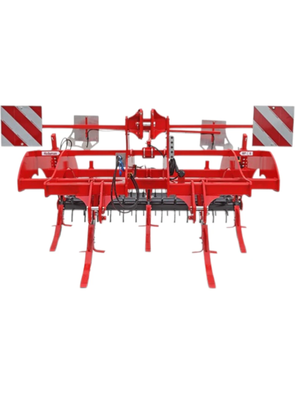 The Italian-type rotary tiller is a suspended machine that tills the soil without leaving raw soil between its legs due to the structure of its legs, breaking the plough layer and tilling the soil without bringing the infertile soil in the lower layer to the surface. Italian-type ploughing allows for soil cultivation at a high working depth. This promotes soil aeration, prevents rainwater from pooling on the surface, allowing water to be drawn to the base and preserving soil moisture, and breaks up the hard layer, allowing plant roots to grow freely towards the base. This work increases yield. Additionally, the roller attached to the chassis presses the soil lifted by the discs simultaneously, minimising moisture loss after the operation.