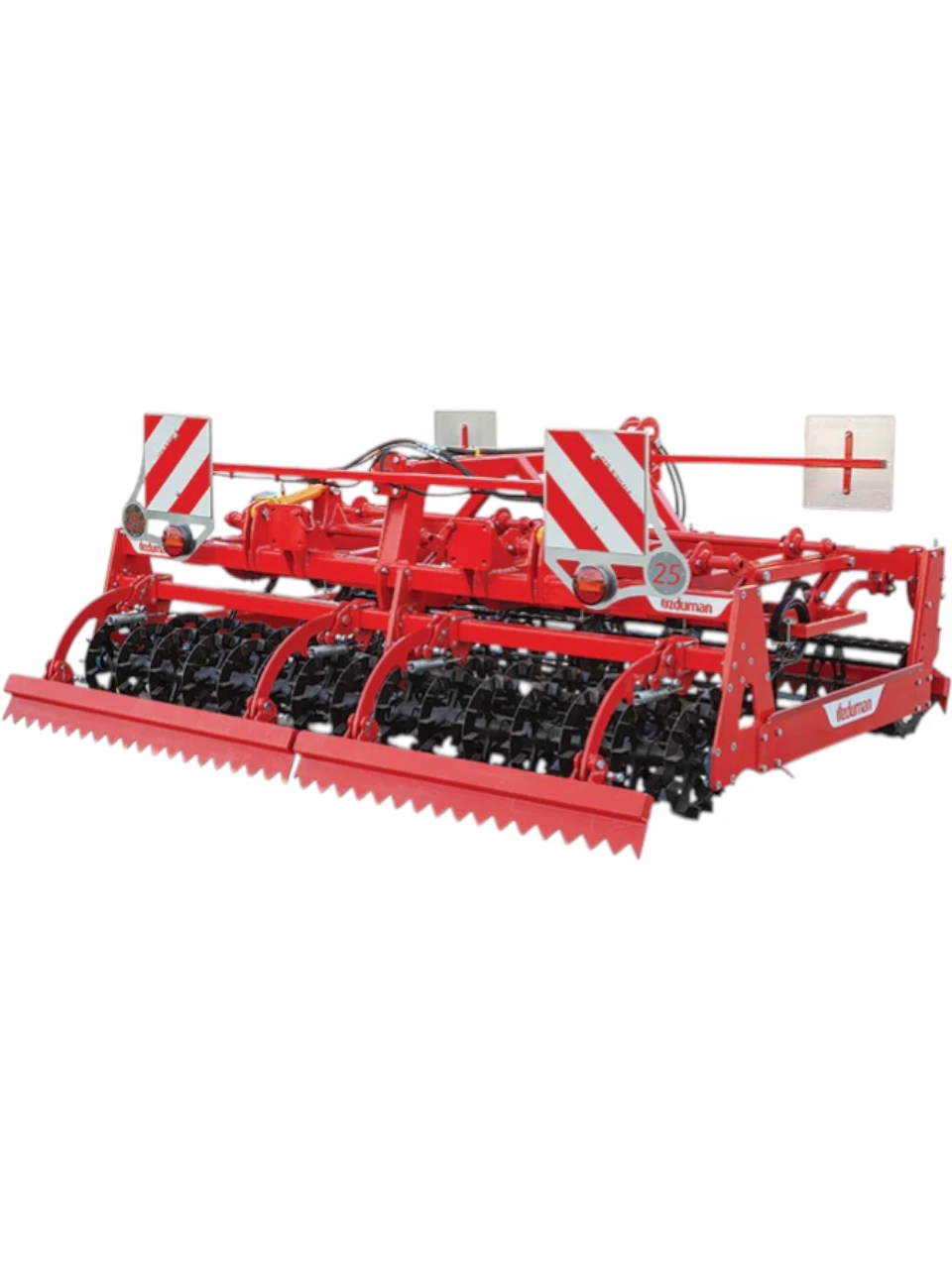The model with three rows of vibrating snake tongues (ideal for clay soils) prefers dense and shallow sowing, allowing the soil surface to warm up and aerate before sowing without mixing the deep soil. The double-row model with 25 cm wide claw shoes achieves an aggressively tilled, fragmented surface layer.